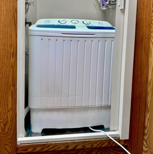 For our first five years on the road, we used our sweet little mini washer.